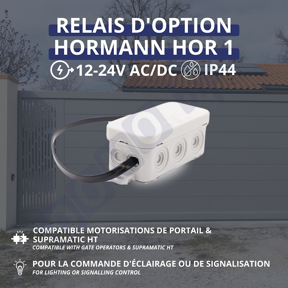 The Hörmann HOR 1 relay is an essential accessory for optimizing the functionality of your Hörmann motor systems. Designed to add options such as lighting or signaling control, it ensures perfect integration and simplified use of your installations.